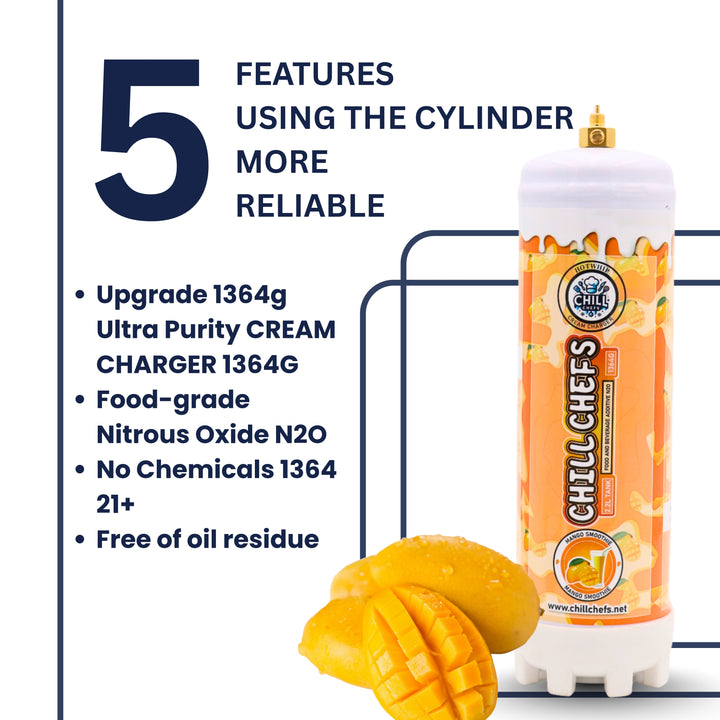 Whipped Cream Chargers, Professional Cream Charger Cartridges for Baking, Desserts, Whipped Cream Maker, Beverage Toppings | whipped cream maker | beverage and coffee topping (Mango, 2.2L)