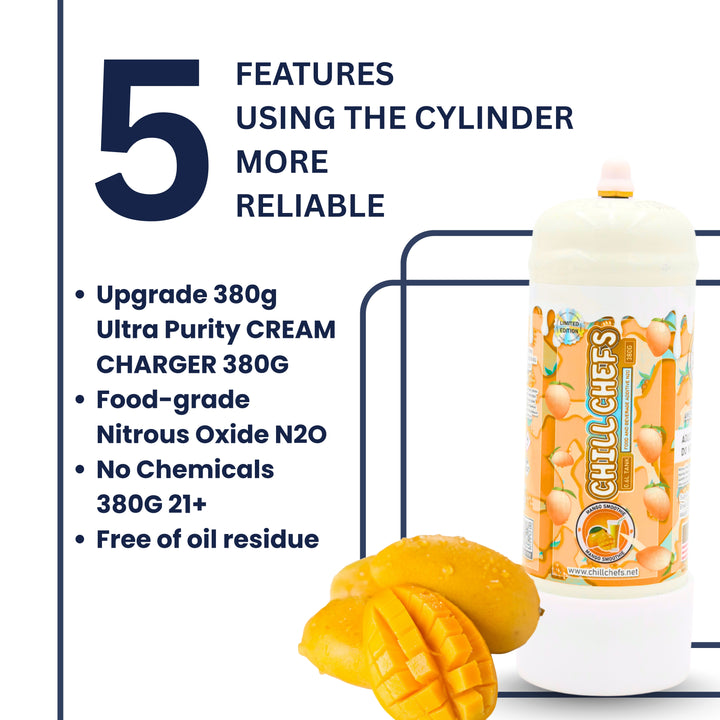 Whipped Cream Chargers, Professional Cream Charger Cartridges for Baking, Desserts, Whipped Cream Maker, Beverage Toppings | whipped cream maker | beverage and coffee topping (Mango Flavor 0.6L)