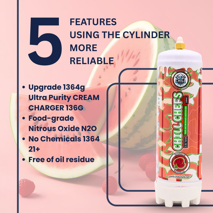 Whipped Cream Chargers, Professional Cream Charger Cartridges for Baking, Desserts, Whipped Cream Maker, Beverage Toppings | whipped cream maker | beverage and coffee topping (Watermalon, 2.2L)